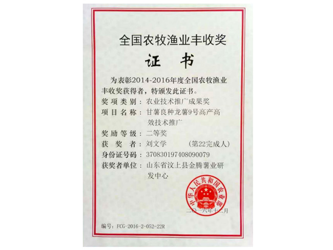 全國(guó)農(nóng)牧漁業(yè)豐收獎(jiǎng)
